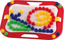Ovaj kreativni set mozaike donosi djeci od 3 godine naviše beskrajne mogućnosti slaganja slika i uzoraka. Veliki, lako drživi čepovi s glatkom kupolastom glavom umeću se u otvore robusne perforirane ploče smještene u čvrstom okviru s ručkama. Igra potiče maštu, razvija koordinaciju oko–ruka i jača koncentraciju.