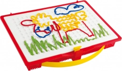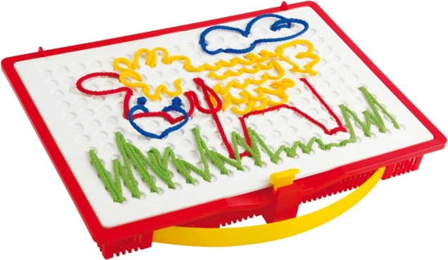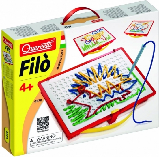 Otkrijte čaroliju kreativne igre s setom za vezenje Quercetti Filò, koji podržava dječju maštu i finu motoriku. Uz pomoć posebnih igala djeca mogu stvarati razne slike uvlačenjem šarenih konopčića u otvore na ploči, što im donosi radost i zabavu.