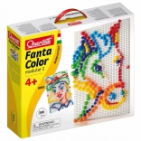 Quercetti Fanta Color Modular je edukativna igračka za djecu od 4 do 8 godina koja potiče kreativnost i spretnost kroz stvaranje raznolikih mozaika uz pomoć veselih, šarenih čavlića.
