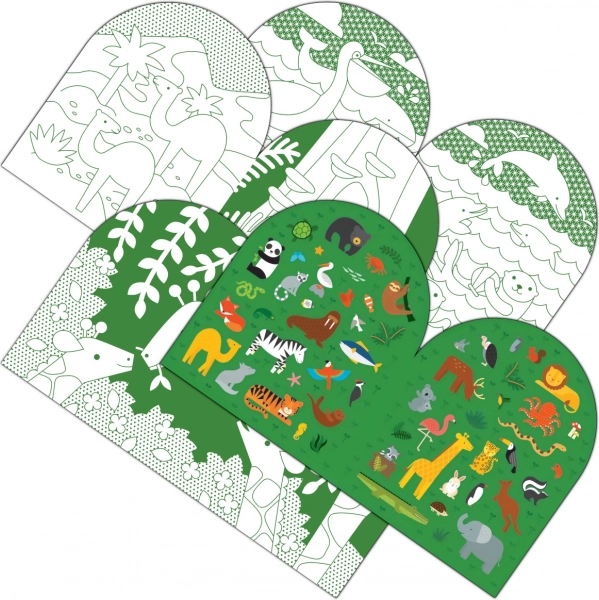 Razvijajte dječju kreativnost uz bojanku i naljepnice Petit Collage na temu divljih životinja. Sadrži 18 dvostranih bojanki i 2 lista šarenih naljepnica. Jednostavni, simpatični oblici potiču maštu i finu motoriku. Izrađeno od papira s FSC certifikatom.