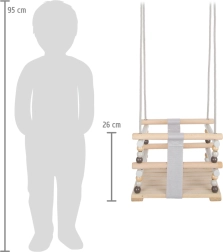 Uz našu drvenu ljuljačku transformiraćete svaki prostor u mjesto puno radosti i zabave. Jednostavno podešavanje visine zahvaljujući karabinama omogućuje prilagodbu prema potrebama vašeg djeteta. Ovaj elegantni skandinavski dizajn savršeno odgovara i unutarnjim i vanjskim prostorima.