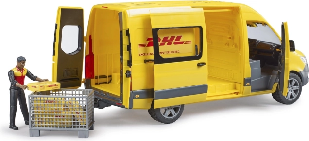 Ovaj Bruder model Mercedes-Benz Sprinter DHL opremljen je realističnim kliznim vratima i prostranim interijerom. Kombi dolazi s figuricom vozača i priborom, kao što su palete i paketići. Igra postaje uzbudljivija s bočnim i stražnjim vratima koja se mogu otvoriti, čineći ga idealnim za scenarije dostave paketa. Veliki tovarni prostor omogućuje sigurno pospremanje svih potrebnih stvari za dostavu. Sjajna zabava za djecu od 4 godine.