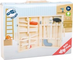 Priredite djeci autentično iskustvo rada s alatom uz kovčeg Small Foot Maik. Sve je pregledno posloženo u čvrstom drvenom kovčegu s užetnim ručkama. Čekić, pila i francuski ključ su osigurani protiv pomicanja, a ostali dijelovi umeću se u preklopne držače koje je lako ukloniti pomoću velikih drvenih vijaka.