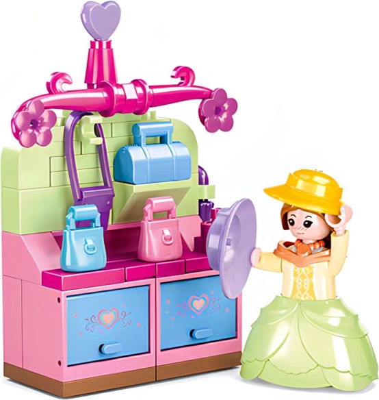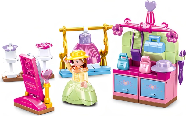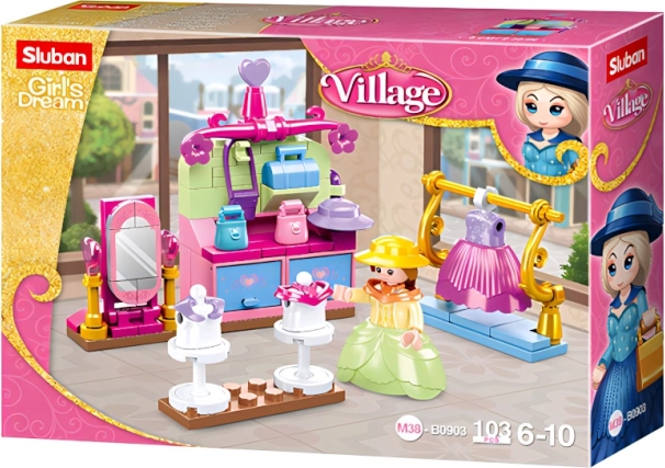 Građevni set Sluban Povijesna trgovina odjećom pruža sjajnu zabavu za djecu zahvaljujući jednostavnosti i mogućnosti stvaranja vlastitih scenarija igre. Set sadrži 103 dijela i jednu figuricu, što omogućuje slaganje raznih modnih prizora u trgovini.