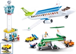 Složite kompletnu zračnu luku s velikim putničkim zrakoplovom, manjim letjelicom, kontrolnim tornjem i voznim parkovnim vozilima. Idealno za igru upravljanja zračnim prometom.