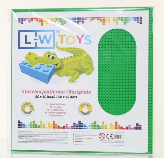 Velika zelena podloga za građenje dimenzija 50x50 točaka osigurava vašim građevinskim projektima čvrstu osnovu. Kompatibilna s LEGO i L-W Toys, to je nezamjenjiv dodatak za svakog malog graditelja.