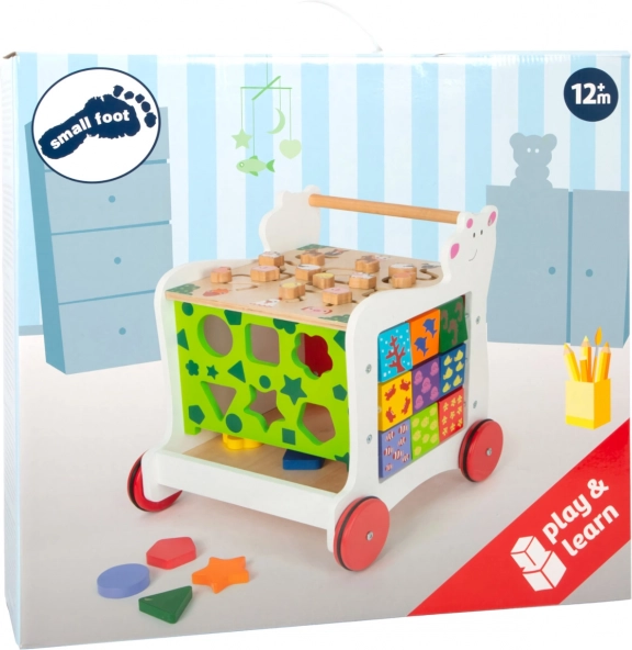 Multifunkcionalno drveno hodaljko s motivom polarnog medvjeda pruža djeci potporu pri prvim koracima i puno zabave. Razvija grubu i finu motoriku, prepoznavanje oblika i boja te potiče kreativnost pri crtanju kredom. Stabilna konstrukcija, gumirana kotačića za tihi hod i praktičan spremni prostor čine hodaljko sjajnim pratiteljem svakog dječjeg sobička.