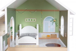 Ova moderna kućica za lutke donosi otvoreni koncept stanovanja, u kojem djeca otkrivaju kuhinju s blagovaonskim kutkom, spavaću sobu, kupaonicu i veliku terasu s mjestom za sjedenje. Zahvaljujući otvorenoj prednjoj strani, igri se lako pristupa sprijeda i u njoj može uživati više djece u isto vrijeme. Svijetla fasada i prigušene boje sjajno se uklapaju u svaki interijer.