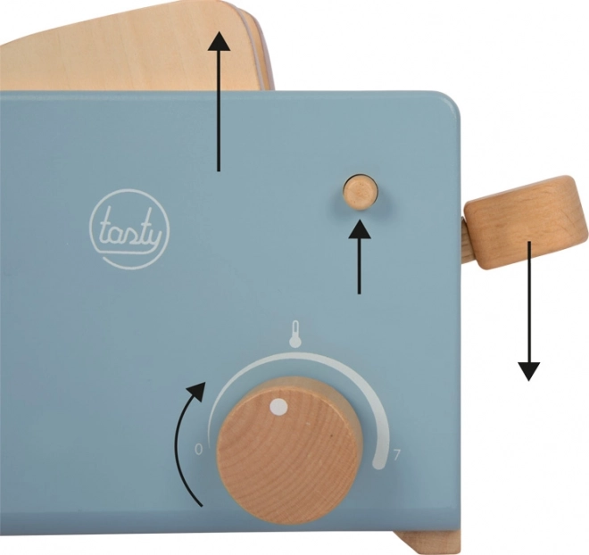 Ovaj realistični drveni set Small foot Tasty pretvara svaku dječju kuhinju u omiljeno mjesto za doručak. Djeca umeću kriške tosta, pritisnu polugu i zahvaljujući funkciji izbacivanja gotov tost „iskoči“. Okretni klik-prekidač vjerno oponaša podešavanje stupnja pečenosti, što povećava autentičnost igre.