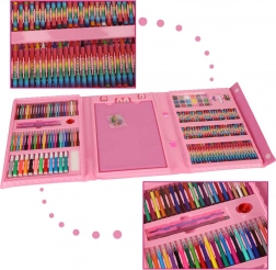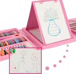 Ovaj ružičasti umjetnički set idealan je za djecu i odrasle koji žele razvijati svoju kreativnost. Set sadrži široku paletu boja i umjetničkih potrepština, organiziranih u praktičnoj sklopivoj kutiji, koju možete lako prenositi.