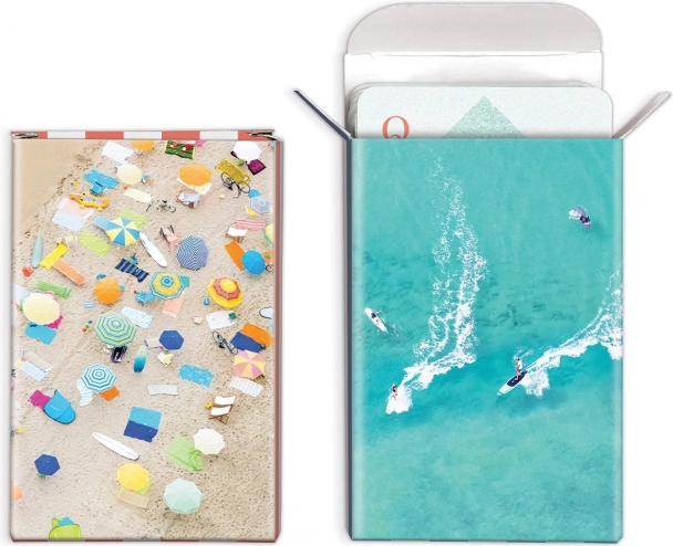 Uživajte u jedinstvenom iskustvu igranja karata s ovim stilskim setom, koji kombinira tradicionalne elemente igre s očaravajućim zračnim snimkama plaža. Set sadrži dva paketa po 54 karte, ukupno 108 karata.