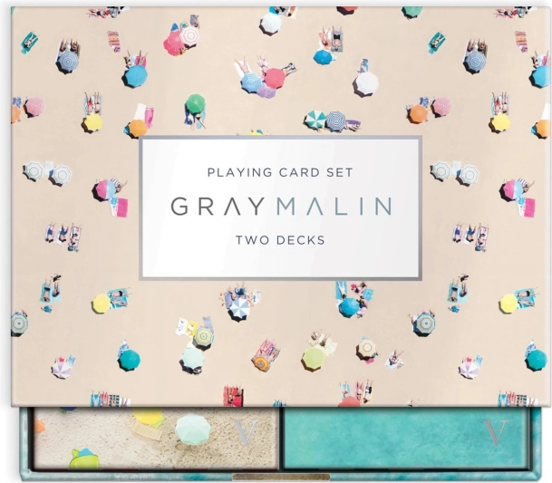 Uživajte u igranju karata s luksuznim setom Gray Malina, koji spaja funkcionalnost igre s umjetničkim prikazom plažnih scena.