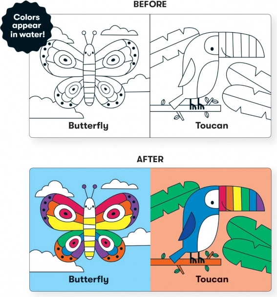 Otkrijte jedinstvenu knjižicu za vodu koja pretvara kupanje u omiljeni ritual. Dovoljno ju je uroniti i ilustracije će se u trenu obojiti u žive nijanse. Dimenzije 15 × 15 × 3 cm i mekani materijal idealni su za male dječje ruke.