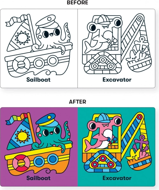 Ova originalna vodena knjižica MUDPUPPY s motivom morskog života donosi djeci radost pri svakom kupanju. Nakon uranjanja u vodu ilustracije se trenutačno oboje i otkrivaju skrivene detalje koji potiču znatiželju i razvoj osjetila. Knjiga je lagana, ugodna za držanje i sigurna i za one najmlađe.