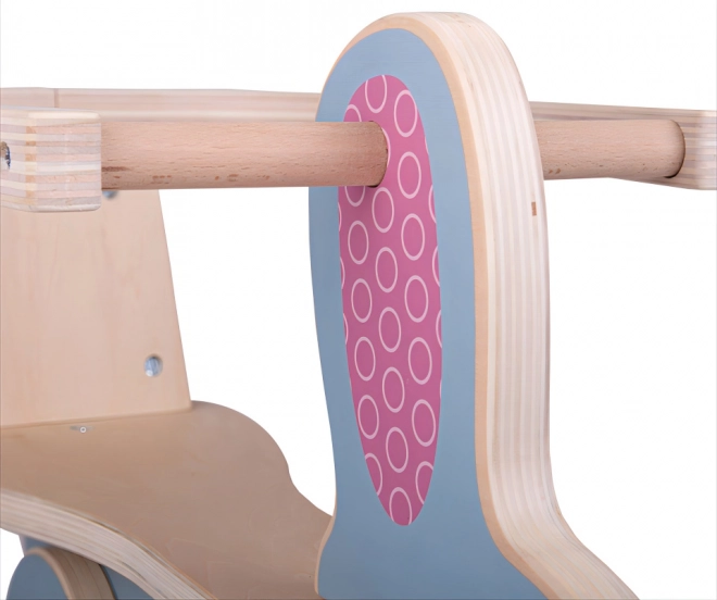 Ovaj stilski ljuljajući zeko od izdržljive šperploče lijepo će osvježiti svaku dječju sobu. Sigurnosni naslon s ogradicom drži dijete čvrsto u sjedalu, dok nježno ljuljanje potiče razvoj motorike, ravnoteže i sigurnosti u pokretu.