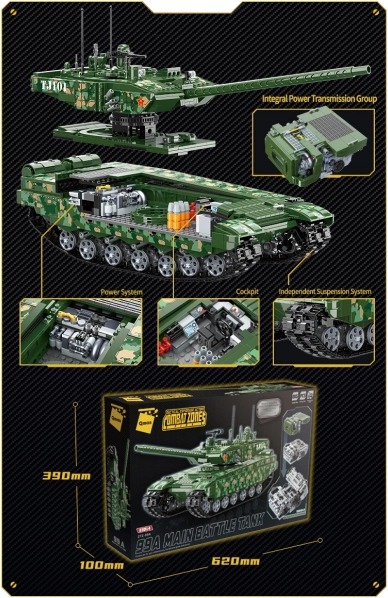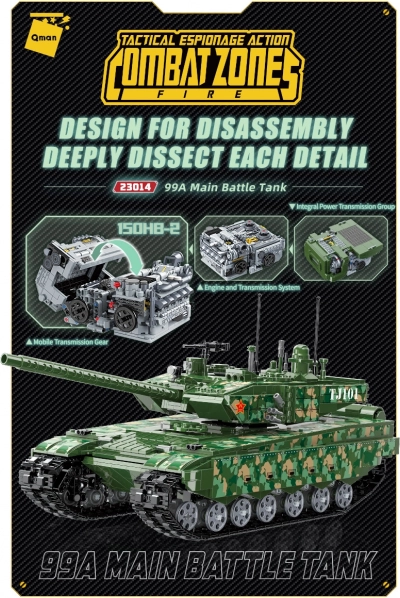 Sastavite kultni kineski tenk 99A od 2 743 dijelova i otkrijte njegove tajne zahvaljujući lako dostupnoj unutrašnjosti, potpuno rotirajućoj kupoli i neovisno opruženom podvozju. Posebnost je veliki model pogonske jedinice 150HB-2, koji omogućuje istraživanje detalja konstrukcije. Qman set je kompatibilan s drugim markama i izrađen od izdržljive ABS plastike.