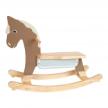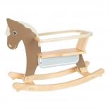 Sigurnost je na prvom mjestu: odvojiva ograda i visoki naslon drže manje jahače u sedlu, graničnici osiguravaju mirno njihanje, a široke klizače daju stabilnost. Sedlo na visini od 26 cm omogućuje udobno sjedanje i mlađoj djeci.