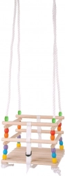 Priuštite djeci sigurnu i zabavnu vožnju na drvenoj ljuljački sa šarenim perlicama Bigjigs Toys. Robusno sjedalo s naslonom i bočnim zaštitama, sigurnosni remen te čvrsta užad osiguravaju udobnost i sigurnost pri ljuljanju. Završna lakirana obrada povećava otpornost i olakšava održavanje.