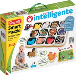 Quercetti Magnetička Umetaljka Farma je sjajna igračka za malu djecu. Na jednoj strani ploče djeca mogu umetati magnete u pripremljene otvore, što im pomaže u razvoju prepoznavanja oblika i boja. Slikovni dijelovi zahvaljujući magnetima lako se pričvrste i mogu se praktično spremiti za sljedeću igru.
