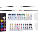 Paleta s 24 akvarelne boje, 24 boje u tubama, kistovi i dvije plastične palete – kompletna oprema za vodene i pokrivne tehnike.