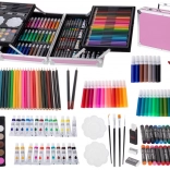 Ovaj univerzalni set nudi čak 145 dijelova s kojima možete stvarati radove raznim tehnikama: crtanje olovkom i bojicama, slikanje akvarelom i zasićenim bojama u tubama, šarene ilustracije flomasterima te rad s uljnim pastelama. Sve je pregledno spremljeno u izdržljivom koferiću sa zasunima i ručkom, pa opremu lako nosite kamo god poželite.