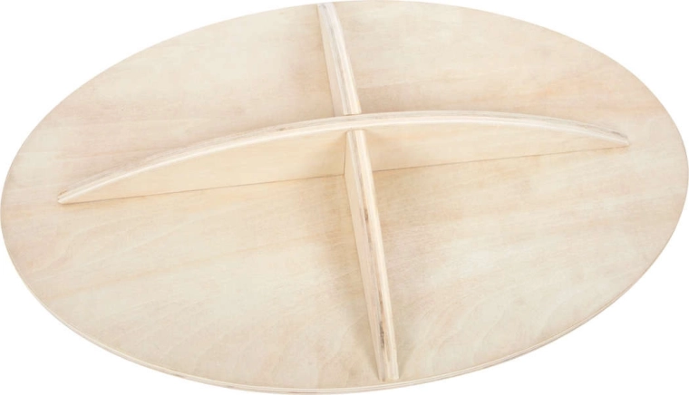 Čvrsta drvena konstrukcija s glatkom površinom ugodna je na dodir i izdržljiva za svakodnevnu upotrebu. Polukuglasto/zaobljeno postolje stvara nježno njihanje koje aktivira duboki stabilizacijski sustav i podupire pravilno držanje tijela. Idealno za djecu od 5 godina naviše te za lagani trening kod kuće ili u vrtiću.