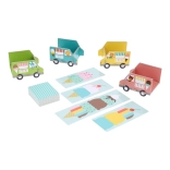 Sadrži šarene kartice i vozila koja potiču dječju maštu i podučavaju prepoznavanju uzoraka i boja.