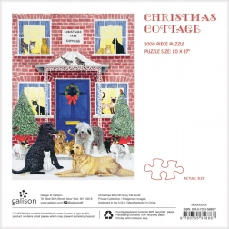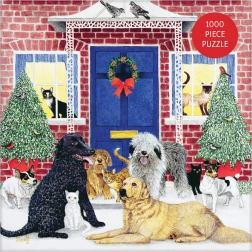 Otkrijte čaroliju Božića uz prizor pun pasa, mačaka i blagdanskih ukrasa ispred tople kućice. Puzzle od 1000 dijelova nude radost pažljivog slaganja, a po dovršetku stvaraju prekrasnu sliku koja veseli i oko i srce.