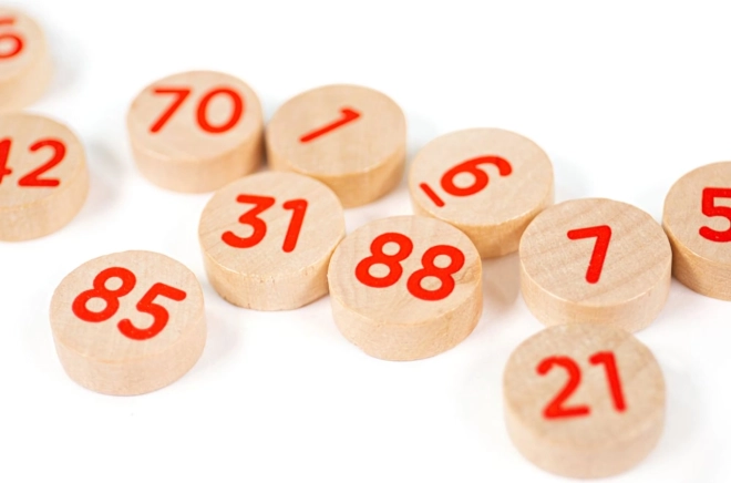 Žetoni su izrađeni od prirodnog drva i označeni jasnim crvenim brojevima za lako čitanje.