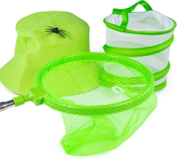 Pretvorite svaku šetnju u avanturu uz ovaj kompletan set za hvatanje kukaca za male istraživače. Sadrži mrežicu s teleskopskom drškom, posudicu za ulov, lupu, hvataljke, dalekozor i praktičan šeširić protiv sunca. Zahvaljujući sklopivoj mrežastoj torbi lagan je, kompaktan i idealan za putovanja. Izrađen od izdržljivih materijala, prikladan od 3 godine.
