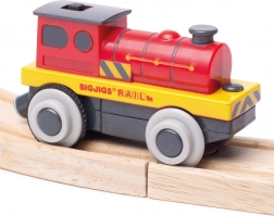 Pokrenite svoju drvenu željezničku prugu s električnom lokomotivom od Bigjigs Rail. Zahvaljujući baterijskom pogonu juri po tračnicama, lako vuče vagone putem magnetskih spojnica i uz gumene obloge na kotačima ima gladak zahvat bez proklizavanja. Čvrsta i izdržljiva izrada u atraktivnoj crvenoj boji te kompatibilnost s većinom željezničkih setova jamče sate kreativne igre.