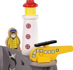 Obogatite dječju drvenu željezničku prugu obalnom scenografijom sa svjetionikom i heliportom. Ovaj drveni set nudi četverosmjerni tunel, svjetionik, helikopter i 2 figurice za beskrajne priče i spasilačke misije. Ističe se robustnom izradom, kompatibilan je s većinom drvenih željezničkih pruga i proizveden je od odgovorno dobivenog drva s nezapaljivim i netoksičnim bojama.