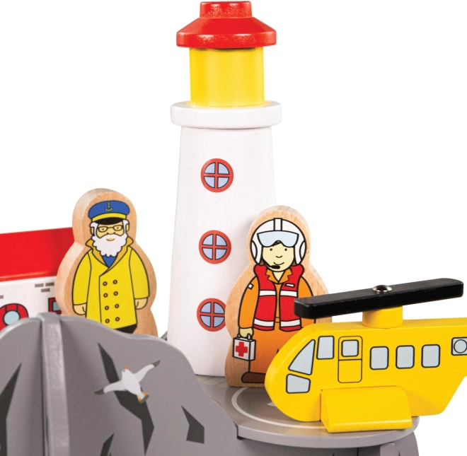 Dodajte u svoj svijet vlakića obalnu avanturu sa svjetionikom, kućicom i sletištem za helikopter. Djeca mogu istraživati tunel skriven u „morskoj” stijeni, upravljati spasilačkim akcijama te razvijati maštu i pripovjedačke vještine. Set je idealan kao maštovito proširenje željezničke pruge i odlično se uklapa u teme poput potrage, spašavanja i života uz more.