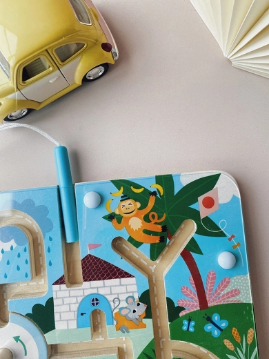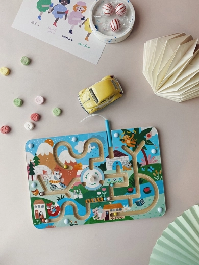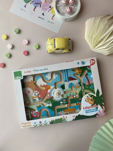 Magnetski labirint od Vilaca uvodi djecu u svijet nježnih ilustracija Michelle Carlslund. Pomoću magnetske olovke djeca mogu pomagati životinjama dovesti njihove kuglice na pravo mjesto. Ova je igračka zabavna i sigurna zahvaljujući magnetskom principu.