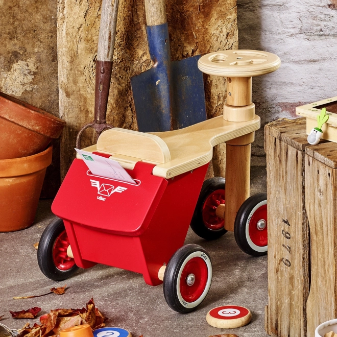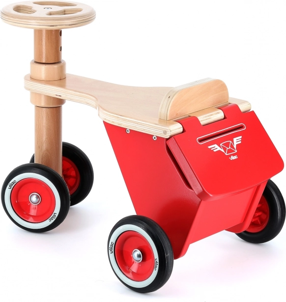 Guralo Vilac Mali Poštar idealan je izbor za svako malo dijete koje voli kretanje i otkrivanje novih mogućnosti. Opremljeno je praktičnim kovčežićem za pohranu na stražnjem dijelu, gdje djeca mogu spremiti svoje omiljene igračke ili prve crteže.