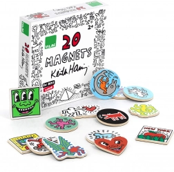 Originalni set drvenih magneta s kultnim ilustracijama KEITH HARING razveselit će vašu hladnjak, ploču i dječju sobu. Magneti od izdržljive šperploče imaju kvalitetan sjajni tisk i čvrsto prianjaju na metalne površine. Savršen poklon u atraktivnoj poklon-kutiji, prikladno od 2 godine.
