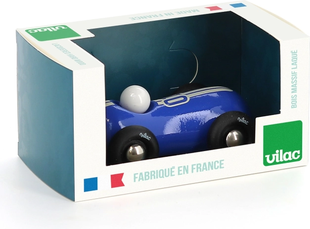 Vilac trkaći automobil Streamline PM u plavoj boji oduševljava bezvremenskim, ugodno zaobljenim dizajnom i preciznom izradom. Drvena karoserija lakirana je tradicionalnom metodom uranjanja, što osigurava izdržljivu i ujednačenu površinu. Plastični kotači s glatkim kotrljanjem čine vožnju ugodnom – kod kuće na podu ili na polici kao stilska dekoracija.