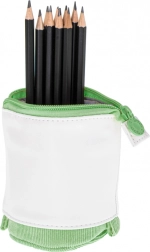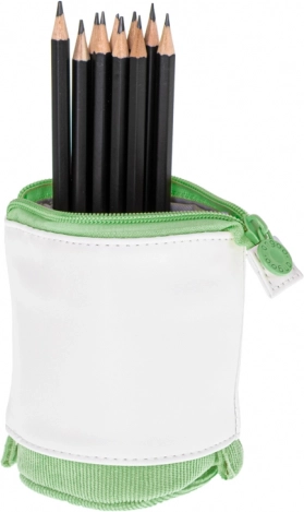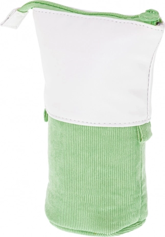 Praktična školska pernica 2u1 u zelenoj boji koja se jednim potezom pretvara u stolni organizator. Nudi prostrano spremanje pribora za pisanje, izdržljiv tekstilni materijal i sigurno zatvaranje na patentni zatvarač za svakodnevnu upotrebu u školi, na fakultetu i u uredu.