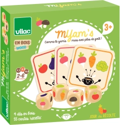 Zabavna obiteljska igra s kockama Vilac – Dan žetve poziva djecu od 3 godine na brzo bacanje i skupljanje recepata. Set sadrži 55 karata i 4 kocke, igra se u 2–6 igrača. Jednostavna pravila, prekrasna izrada i ilustracije povrća potiču računanje, koncentraciju i opažanje.