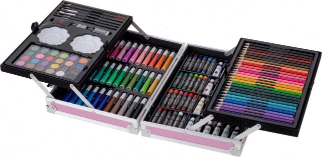 Sve što trebate za kreativno stvaranje na jednom mjestu. Set kombinira različite tehnike – crtanje, koloriranje i slikanje. Zahvaljujući bogatoj paleti boja lako ćete pronaći točan nijansu i u potpunosti izraziti svoju maštu. Prijenosni koferić sa pouzdanom ručkom i dvostrukim kopčama omogućuje da likovne potrepštine ponesete kamo god želite.