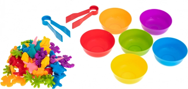 Šest šarenih zdjelica i 36 figurica omogućuju djeci razvrstavanje, uspoređivanje i brojanje – odlična osnova za matematičke vještine.