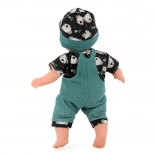 Pažljivo dizajnirana odjeća s originalnim uzorcima uključuje majicu, hlače i kapicu u skladnim bojama. Visoka kvaliteta izrade osigurava dug vijek trajanja i nudi niz dodataka za proširenje dječje igre. Ovu lutku moguće je prati u perilici na nježnom programu pri 30°C, što olakšava održavanje.