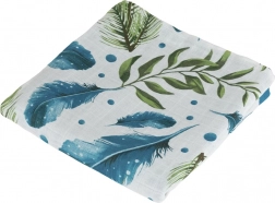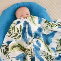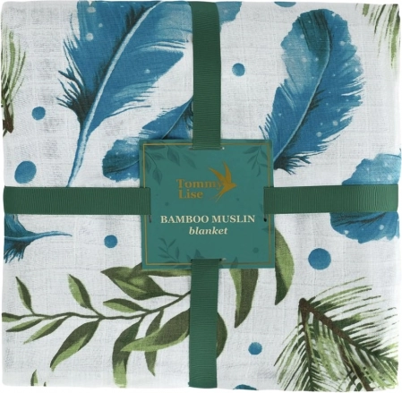 Obucite svoju bebu u udobnost i mekoću. Ova bambusova muselinska deka dizajnirana je za maksimalnu udobnost s prekrasnim motivom perja i listova. Izrađena od 70% bambusa i 30% pamuka, idealna je za vruće dane zbog svoje prozračnosti i hladnog osjećaja.