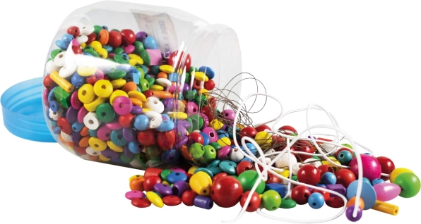 Predstavljamo kreativni set pun šarenih i različito velikih drvenih perlica, idealan za vježbanje fine motorike vaše djece. Niti za nizanje su savitljive i elastične, što olakšava rukovanje i omogućuje glatko nizanje.