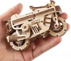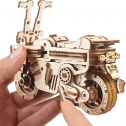 Sklopivi skuter UGEARS je pametna drvena mehanička slagalica koja spaja zabavu, tehniku i dizajn. Zahvaljujući promišljenoj kompaktnoj konstrukciji lako sklapate osjetljive dijelove i nosite model sa sobom – primjerice u džepu ruksaka. Mehanizam na navijanje s metalnom oprugom na jedno navijanje prijeđe do 2 metra.