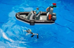 - Pokretne i potpuno opremljene figurice policajca i ronioca
