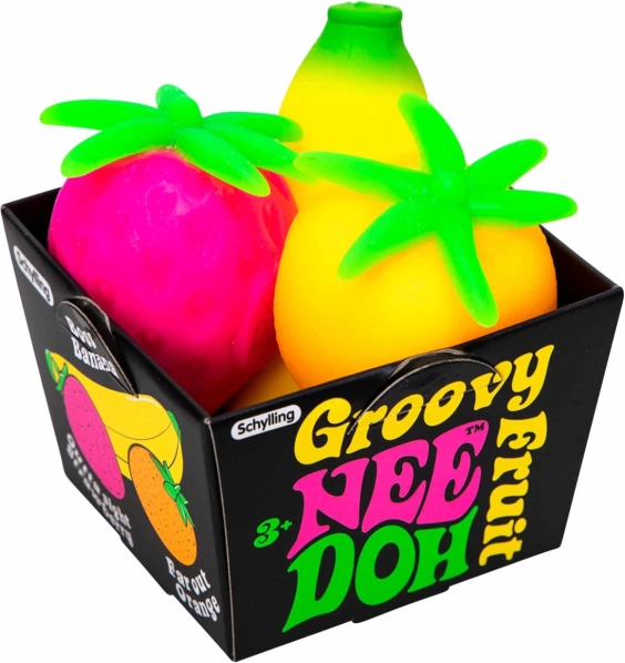 Schylling Groovy NeeDoh stiskavo voće nudi jedinstven način za uživanje u zabavi i pronalazak mira. Ove voćne loptice idealne su za igru u pokretu ili kao sredstvo olakšanja od anksioznosti. Izrađene od netoksičnog materijala koji se uvijek vraća u prvotni oblik. Omogućuju stiskanje, istezanje i povlačenje, što potiče koncentraciju i pažnju. Pogodne su za djecu i odrasle s ADD-om, ADHD-om, OCD-om, autizmom i anksioznošću.