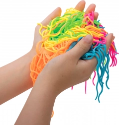 NEE DOH NOODLIES su mekani, elastični i nevjerojatno zabavni „rezanci“ koje možete neograničeno razvlačiti, uvijati i plesti. Odlično funkcioniraju kao antistresna fidget igračka – olakšavaju napetost, poboljšavaju koncentraciju i pružaju ugodan taktilni doživljaj bez nereda.