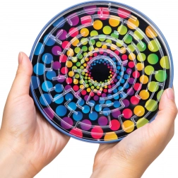 Uživajte u pametnoj igri bilo kada i bilo gdje. Ovaj okrugli labirint s metalnom kuglicom nudi tri očaravajuća motiva – crno‑bijelu spiralu, crveno‑žuti vrtlog i šarenu “dugu”. Dovoljno je nježno naginjati igru i navigirati kuglicu zavojitim stazama do središta. Odličan izbor za putovanja, čekaonice i trenutke odmora.