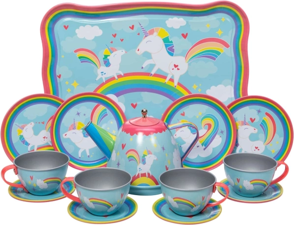 Ovaj čarobni set za čaj s dizajnom jednoroga unijet će puno mašte i radosti u dječju sobu. Metalna izvedba je lagana, ali istovremeno izdržljiva, pa je savršena za svakodnevnu igru. Djeca mogu posluživati čaj prijateljima, lutkama i plišanim igračkama te tako vježbati finu motoriku i društveno ponašanje.